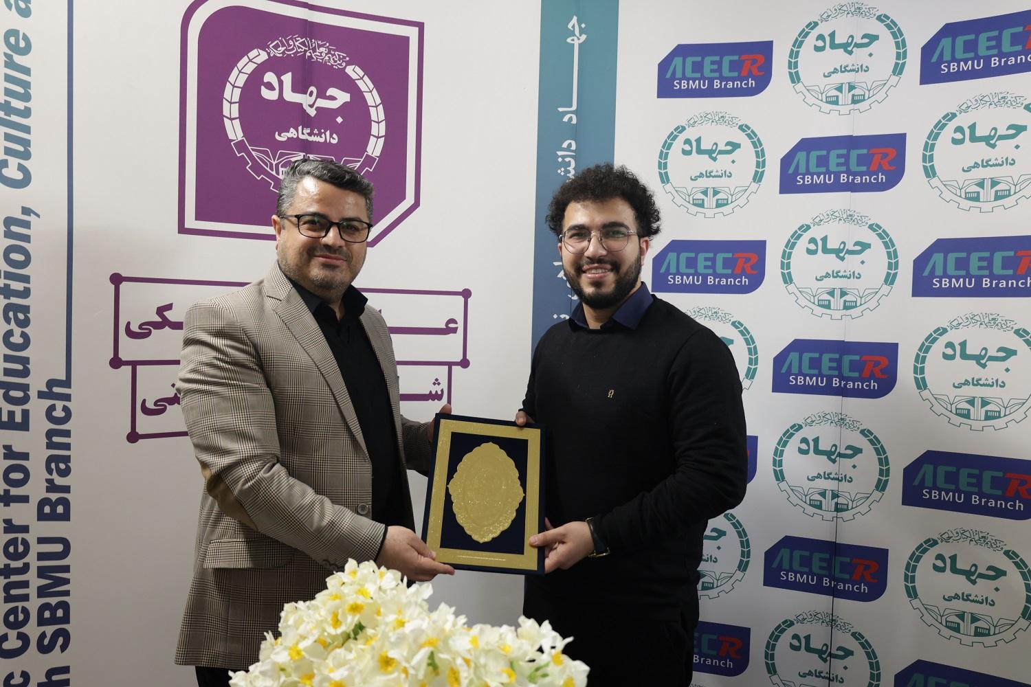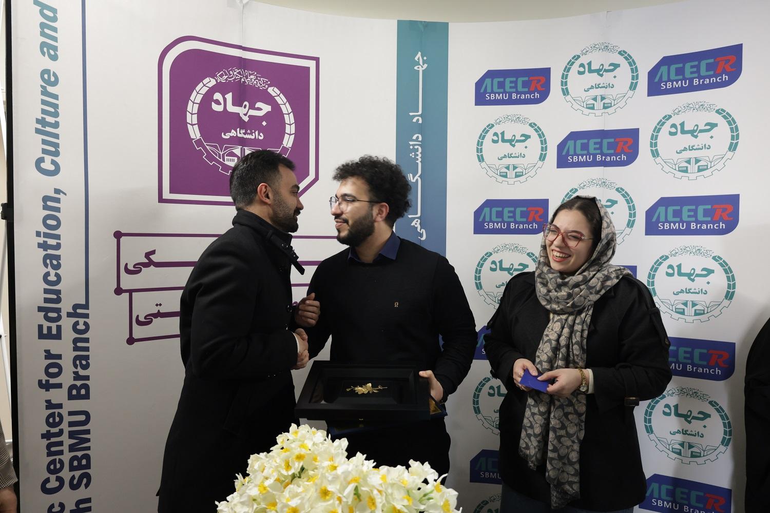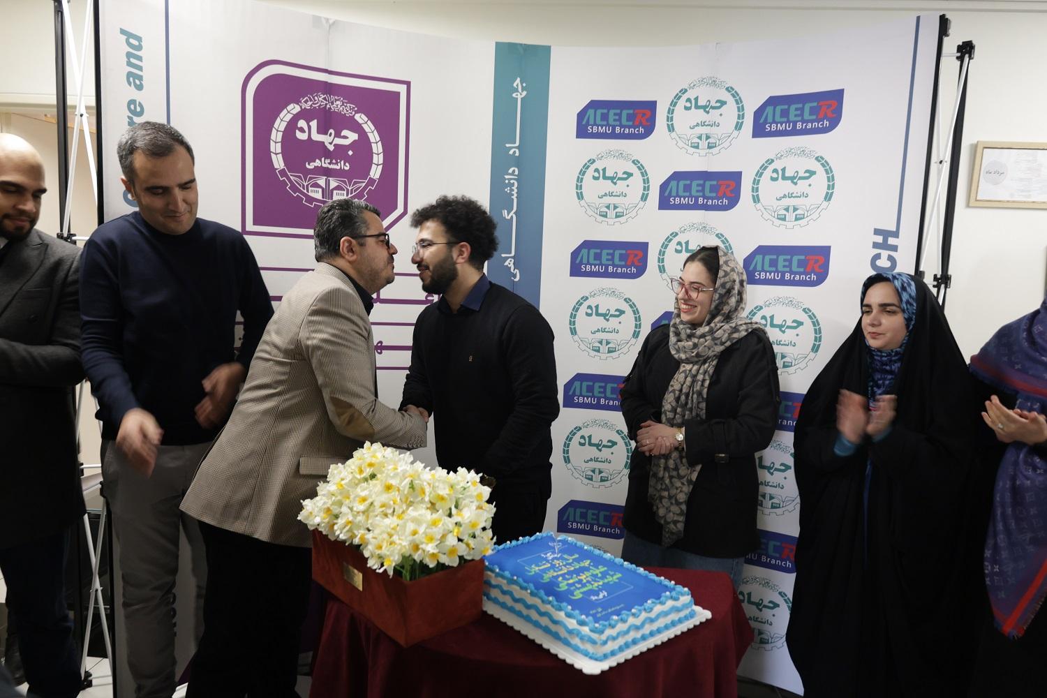 در این مراسم، ضمن بریدن کیک سالگرد تشکیل این واحد جهاددانشگاهی، سید ابراهیم هاشمورزی از ادیب سیفالدینی دانشآموخته دانشگاه جهاددانشگاهی علوم پزشکی شهیدبهشتی به مناسبت پایان دوران خدمت سربازی به صورت امریه جهاددانشگاهی علوم پزشکی شهیدبهشتی با لوح و هدیه قدردانی کرد.