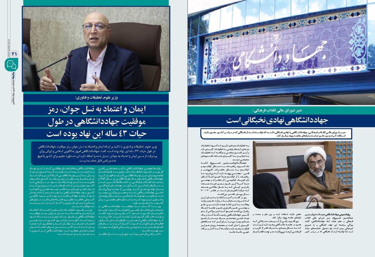 بخشی از عناوین اخبار منتشرشده در این شماره «پیام جهاد» شامل موضوعات زیر میشود: