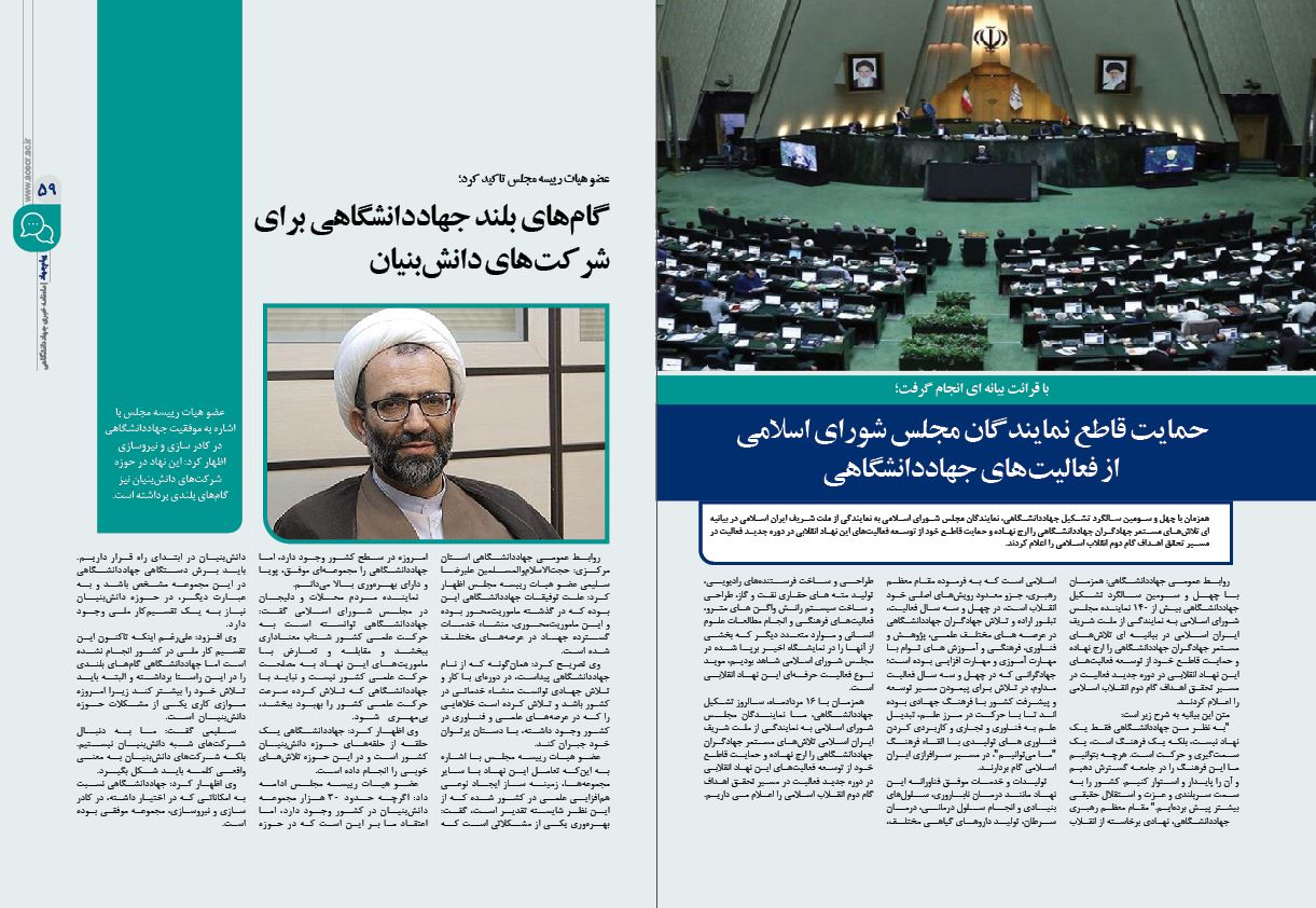 ✓ حمایت قاطع نمایندگان مجلس شورای اسلامی از فعالیتهای جهاددانشگاهی