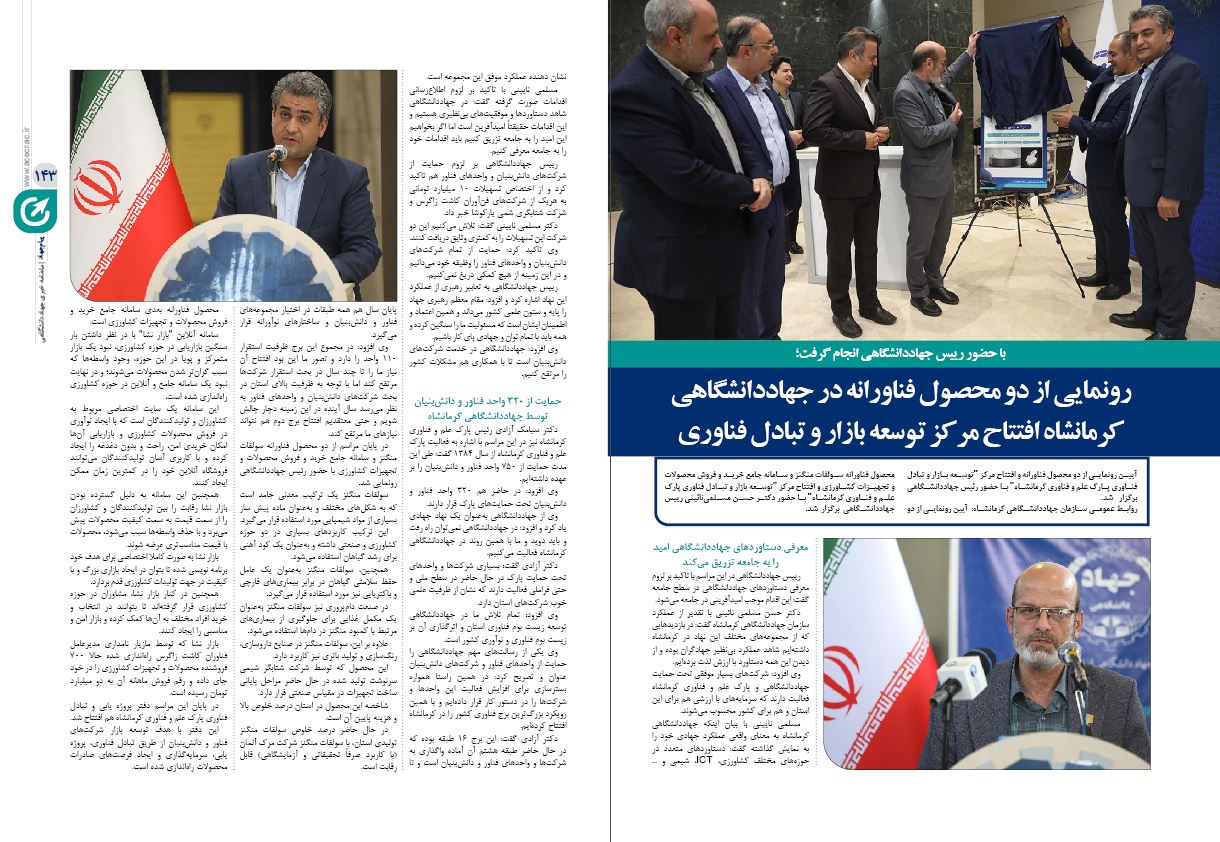 ✓رونمایی از دو محصول فناورانه در جهاددانشگاهی کرمانشاه افتتاح مرکز توسعه بازار و تبادل فناوری
