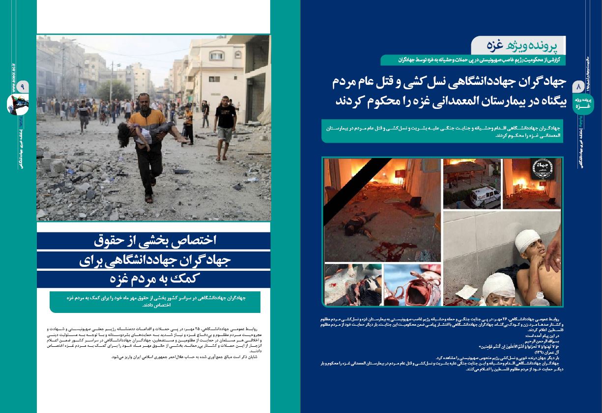 ✓ جهادگران جهاددانشگاهی نسلکشی و قتلعام مردم بیگناه در بیمارستان المعمدانی غزه را محکوم کردند