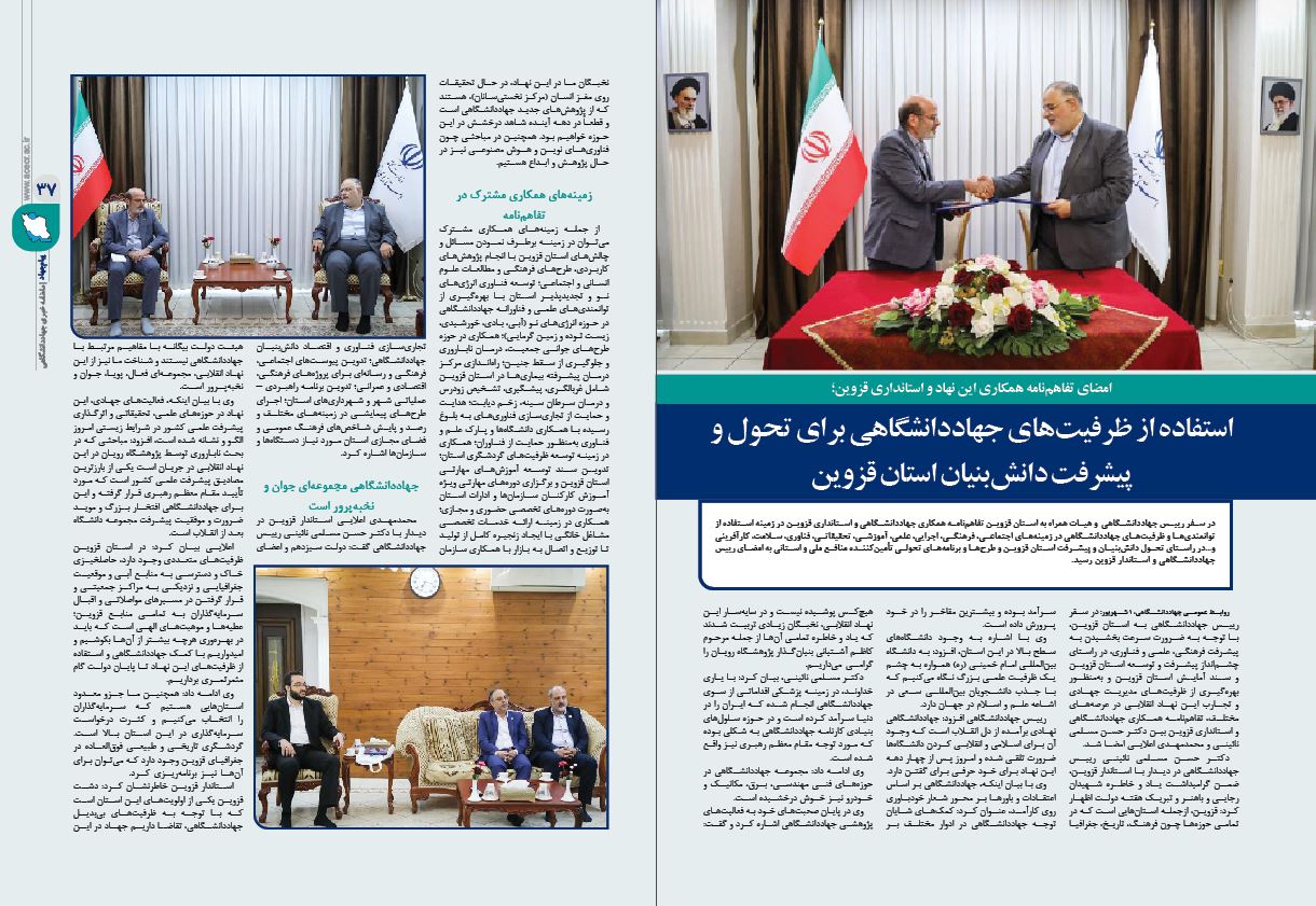 ✓ استفاده از ظرفیتهای جهاددانشگاهی برای تحول و پیشرفت دانشبنیان استان قزوین