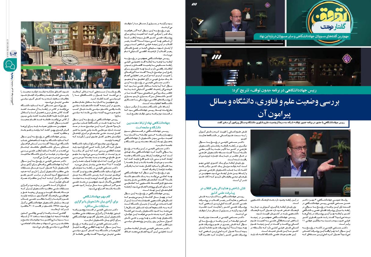 بخشی از عناوین اخبار منتشرشده در این شماره «پیام جهاد» شامل موضوعات زیر میشود: