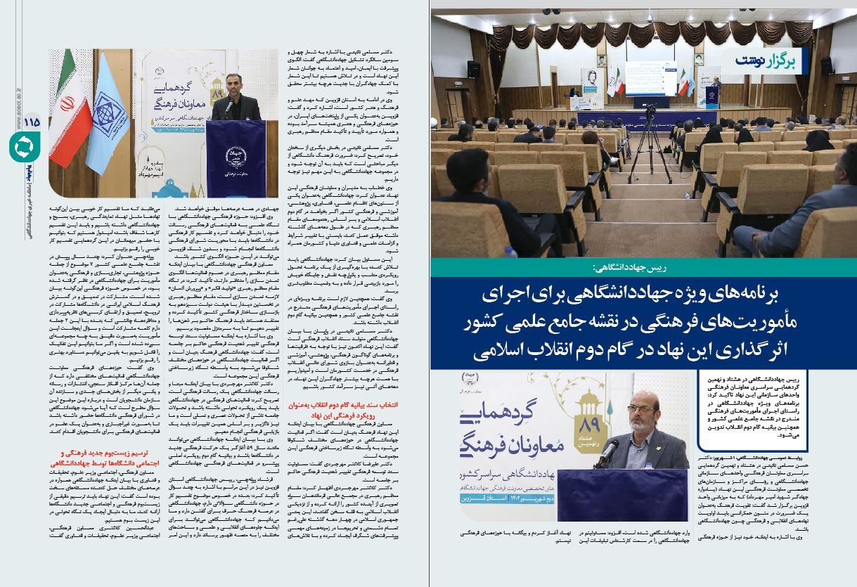 ✓ برنامههای ویژه جهاددانشگاهی برای اجرای مأموریتهای فرهنگی در نقشه جامع علمی کشور اثرگذاری این نهاد در گام دوم انقلاب اسلامی